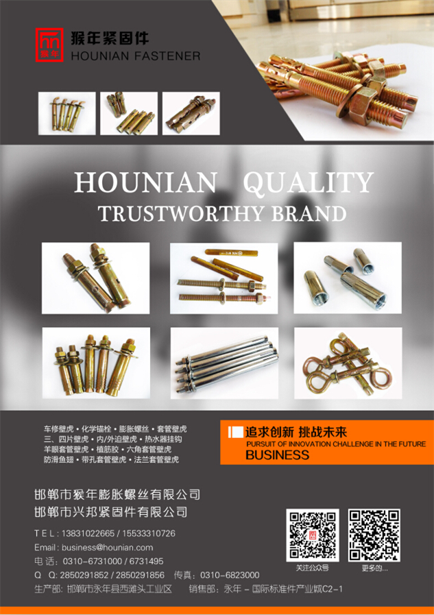 點(diǎn)擊數(shù):38862015-12-17 09:17:59 來(lái)源: 邯鄲市猴年膨脹螺絲有限公司|車修壁虎|內(nèi)爆|外爆|套管壁虎|化學(xué)錨栓|地腳螺絲|螺母|螺栓